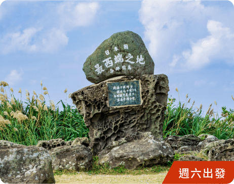 與那國島是日本最西端,島上最西側的西崎以「日本最西端石碑」與絕美夕陽聞名。這裡能欣賞全日本最晚的日落,天氣晴朗時甚至能在紅橘色地平線上望見遠方的台灣,是感受島嶼遼闊視野的最佳位置。