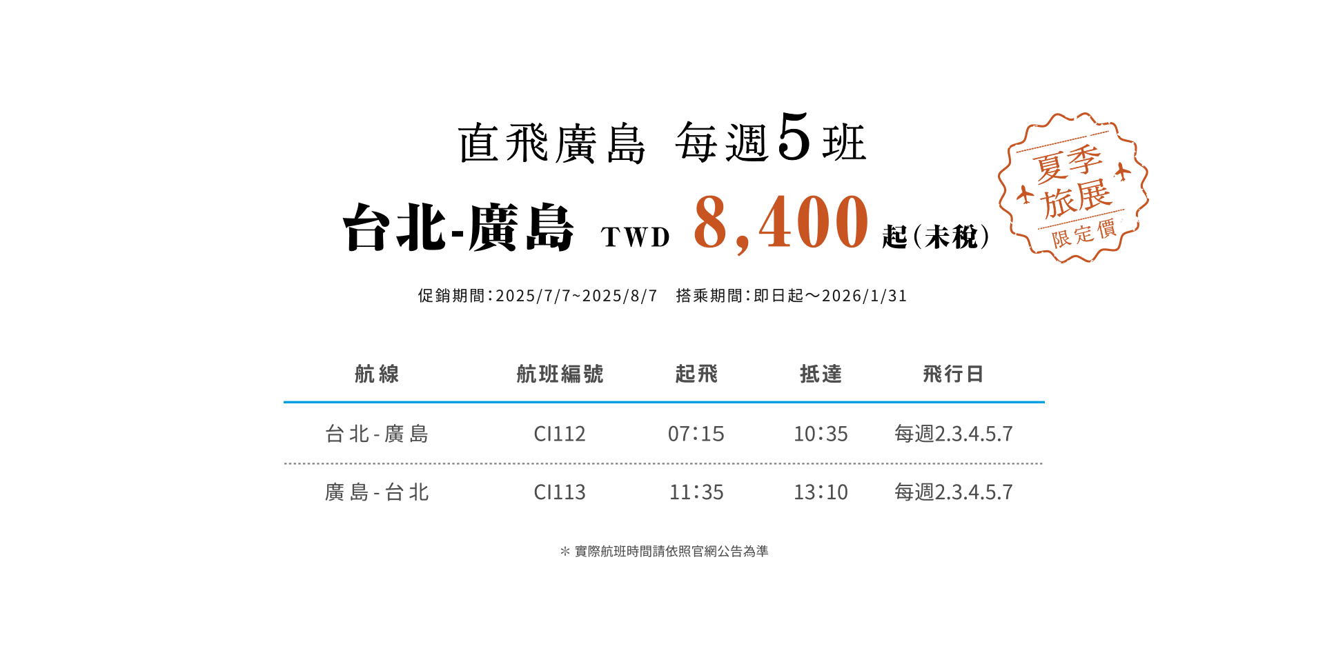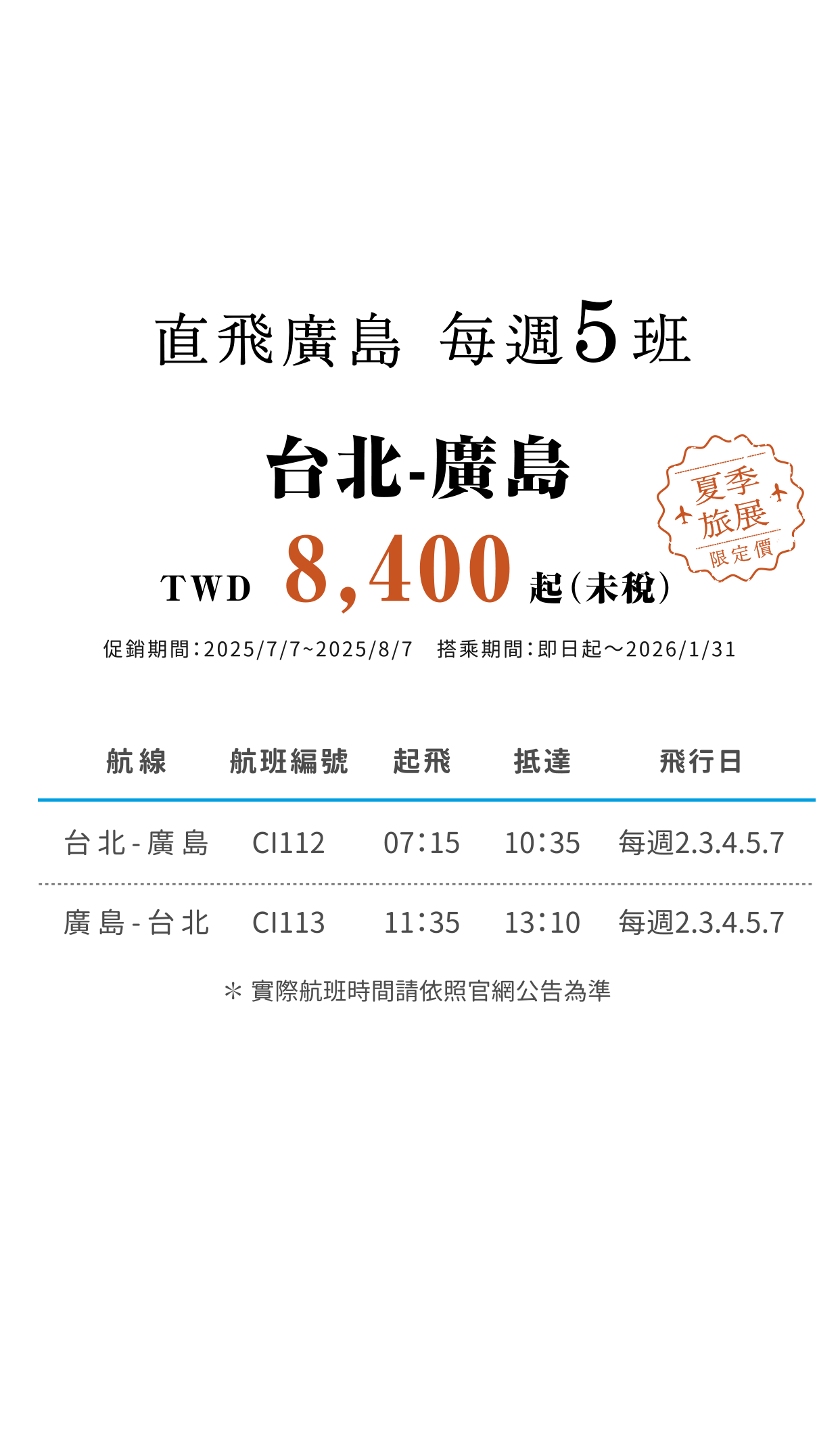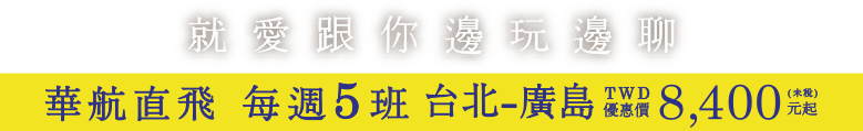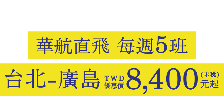 台北-廣島 TWD 8,400起(未稅)